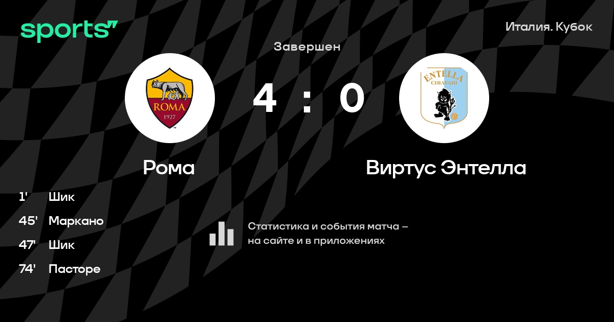 Кубок Италии. «Рома» разгромила «Виртус Энтеллу», «Кальяри» проиграл «Аталанте»