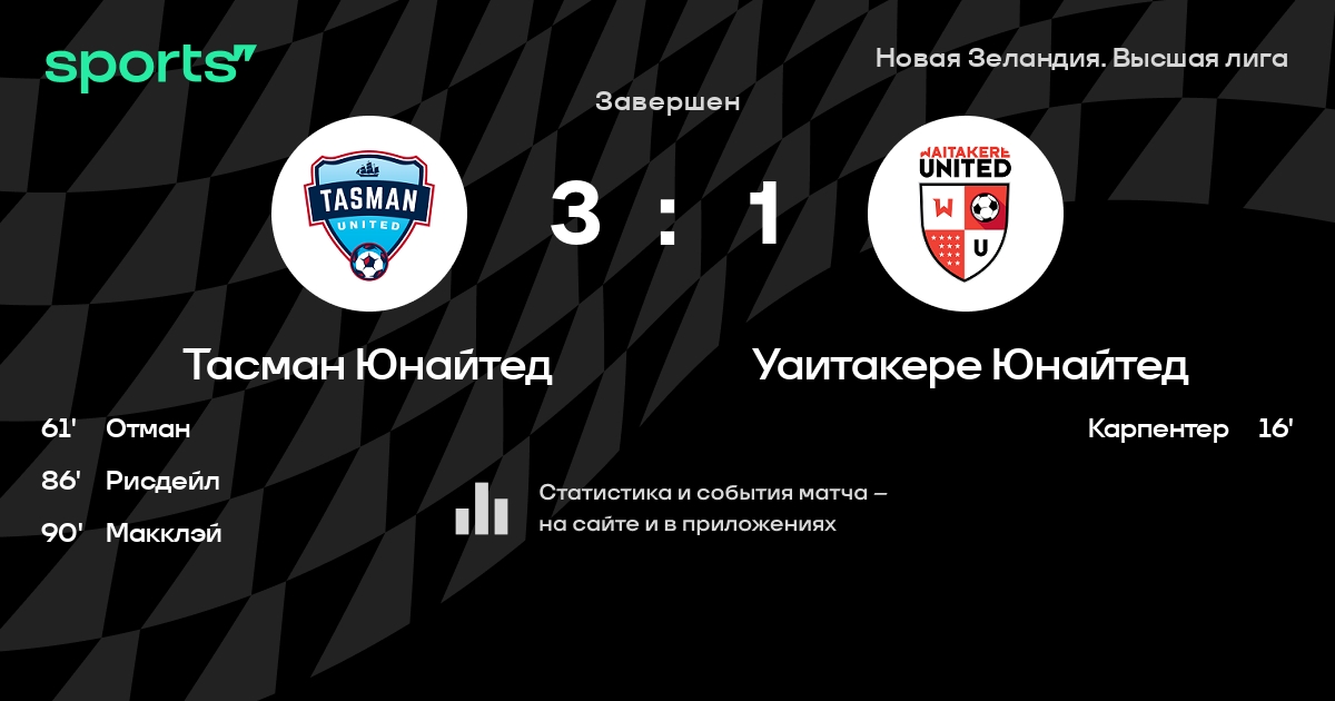 Тасман Юнайтед - Уаитакере Юнайтед: статистика матча