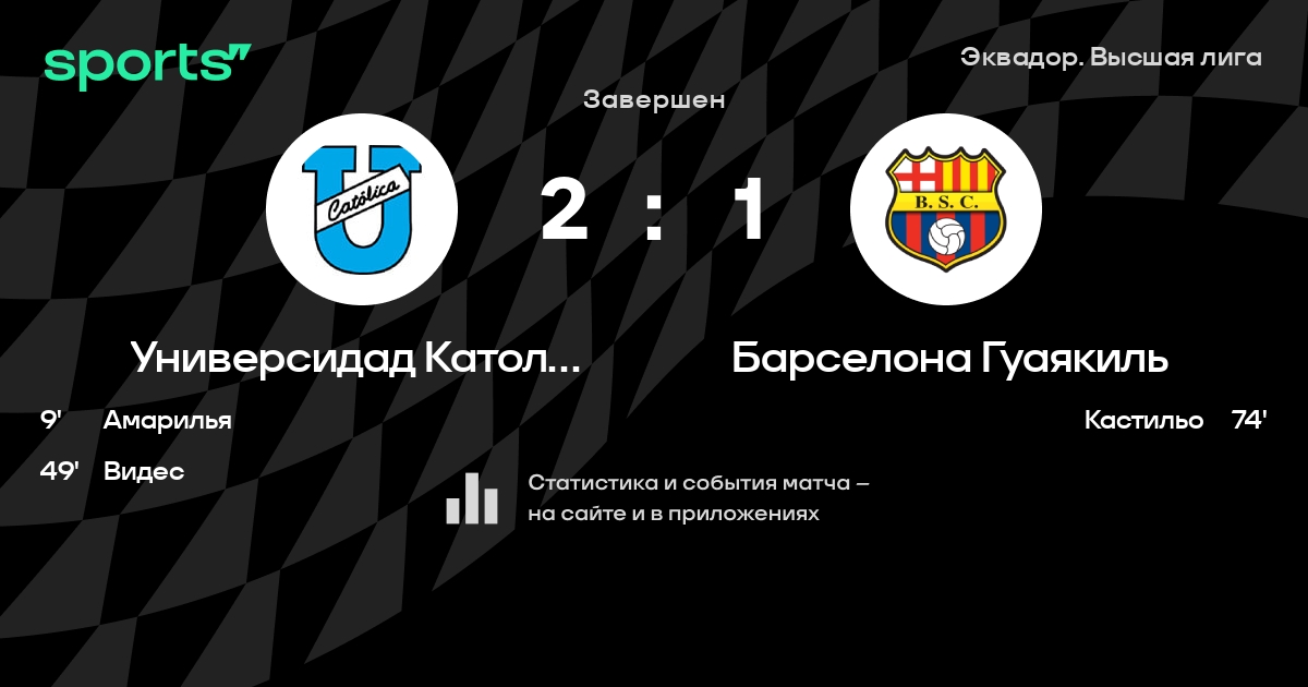 Универсидад Католика Кито – Барселона Гуаякиль: коэффициенты