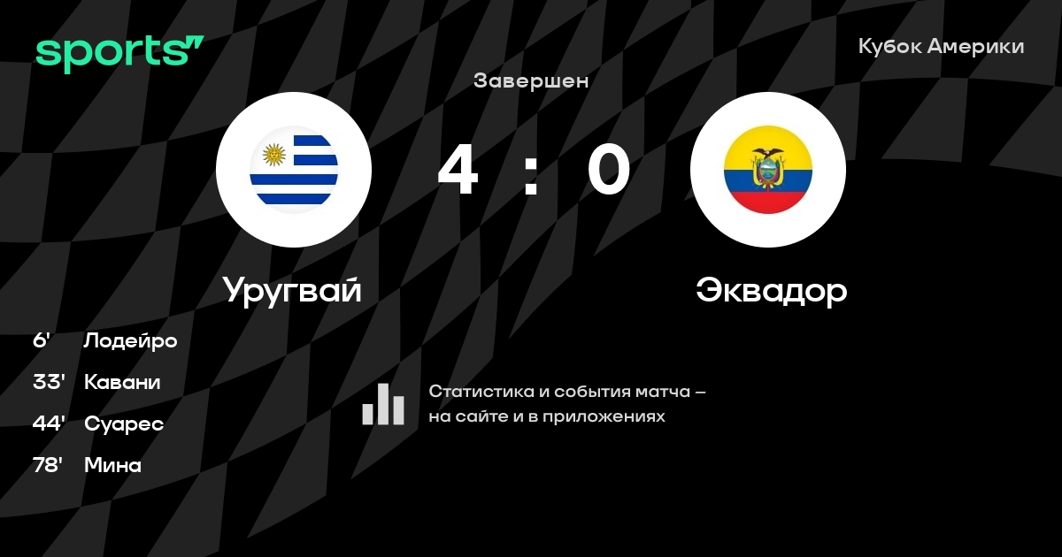 Муслера - Лаксальт, Годин, Хименес, Касерес - Лодейро, Бентанкур, Весино, Нандес - Кавани, СуаресЗапасные: Кампанья, Сильва, Коатес, Гонсалес, Саракки, де Арраскаэта, Перейро, Торрейра, Вальверде, Макси Гомес, Родригес, Стуани