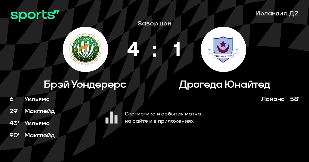 Брэй Уондерерс - Дрогеда Юнайтед: составы на матч
