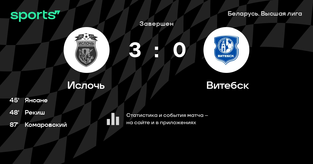 Ислочь – Витебск: коэффициенты