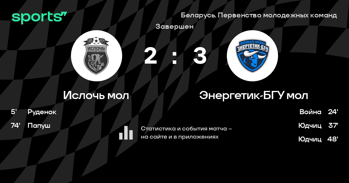 Ислочь мол – Энергетик-БГУ мол: коэффициенты