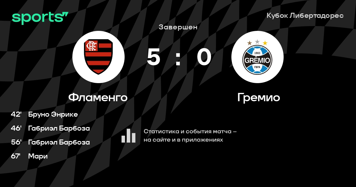 Диего Алвес - Филипе Луис, Мари, Родриго Кайо, Рафинья - Арао, Жерсон, де Арраскаэта, Эвертон Рибейро, Бруно Энрике - Габриэл БарбозаЗапасные: Габриэл Соуза, Сезар, Луис Родолфо, Рене, Тулер, Родиней, Рейньер, Пирис, Диего, Винисиус, Витиньо, Линкольн