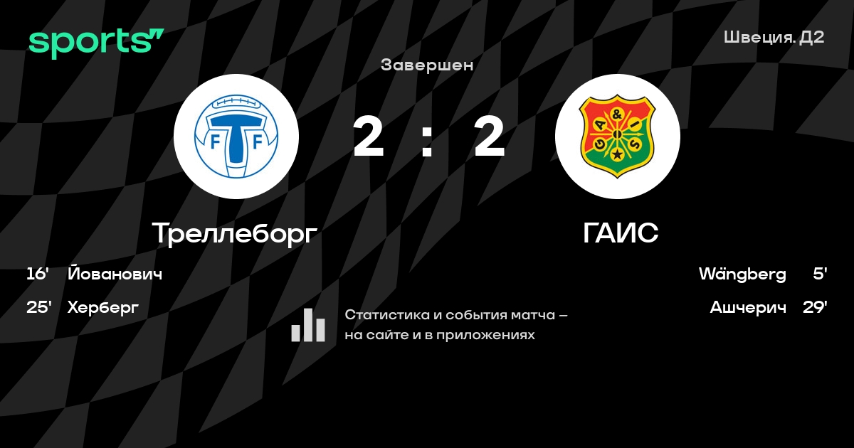 Юханссон - Вальстрем, Nystrom, Wangberg, Нето - Ранджелович, Olsson, Бергхольц - Ашчерич, Бом, ПланаЗапасные: Мехич, Ostling, Розенквист, Harvey, Hamidovic, Dickson, Kabashi