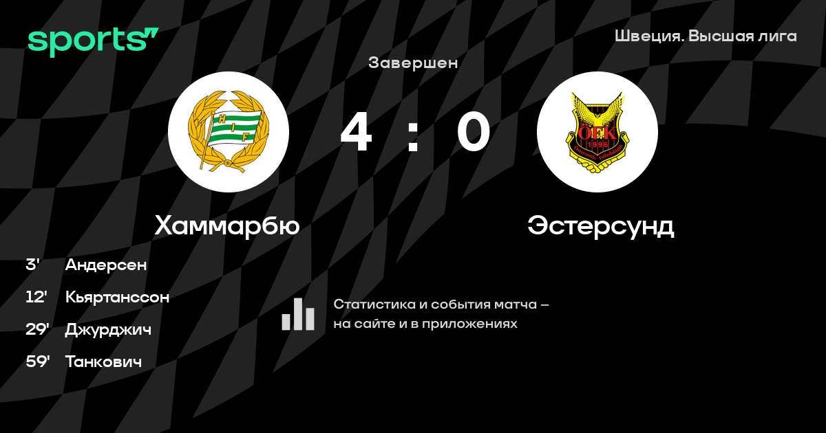 | 3 | Хаммарбю | 30 | 20 | 5 | 5 | 75 | 38 | +37 | 65 | ||