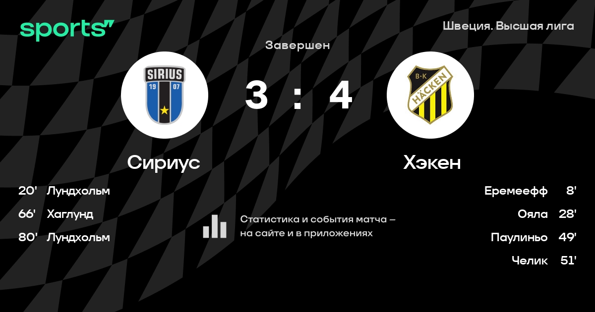 Альвбоге - Бьоркстрем, Сисей, Ларсон - Бьорнстрем, Андерссон, Тор, Штоль - Линдберг, Лундхольм, ХаглундЗапасные: Юнссон, Арвидссон, Брахольм, Файки, Густафссон, Разак, Сирелиус