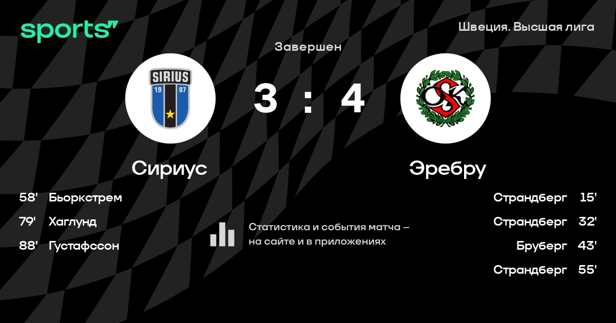 Альвбоге - Сирелиус, Бьоркстрем, Сисей, Ларсон - Андерссон, Тор, Саед, Лундхольм, Хаглунд - ДжуниорЗапасные: Юнссон, Бьорнстрем, Штоль, Густафссон, Линдберг, Разак, Оффия