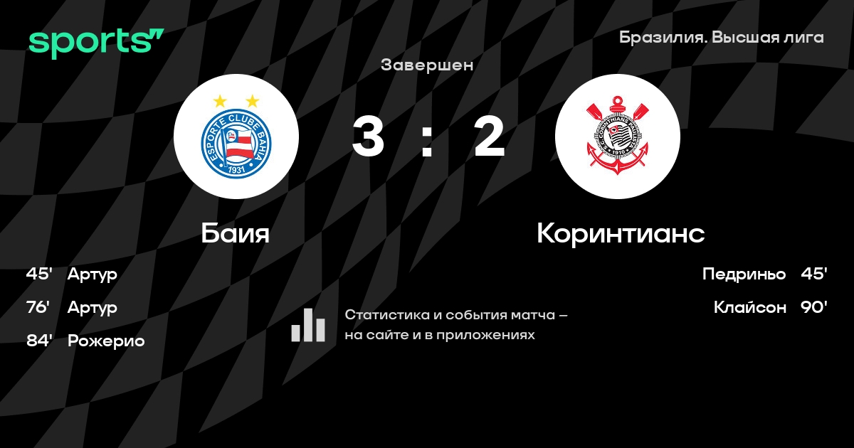 Кассио - Карлос Аугусто, Педро Энрике, Маноэл, Фагнер - Клайсон, Ральф, Сорноса, Рамиро, Педриньо - БоселлиЗапасные: Валтер, Марлон Боржес, Мендес, Лукас Питон, Маседо, Ришард, Фабрисио Ойя, Жадсон, Матеус Витал, Вагнер Лав, Андре