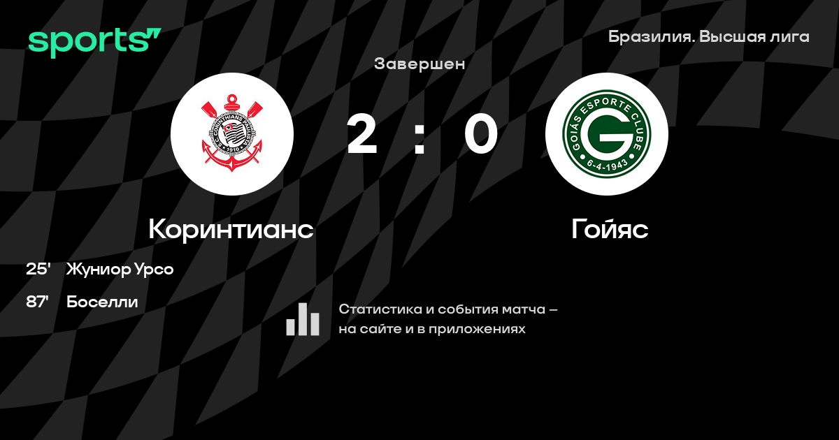 Кассио - Карлос Аугусто, Жил, Маноэл, Фагнер - Клайсон, Габриэл, Матеус Витал, Жуниор Урсо, Педриньо - БоселлиЗапасные: Каике, Авелар, Энрике Адриано, Маседо, Рамиро, Жадсон, Режис, Сорноса, Матеус Жезус, Вагнер Лав, Эвералдо, Густаво