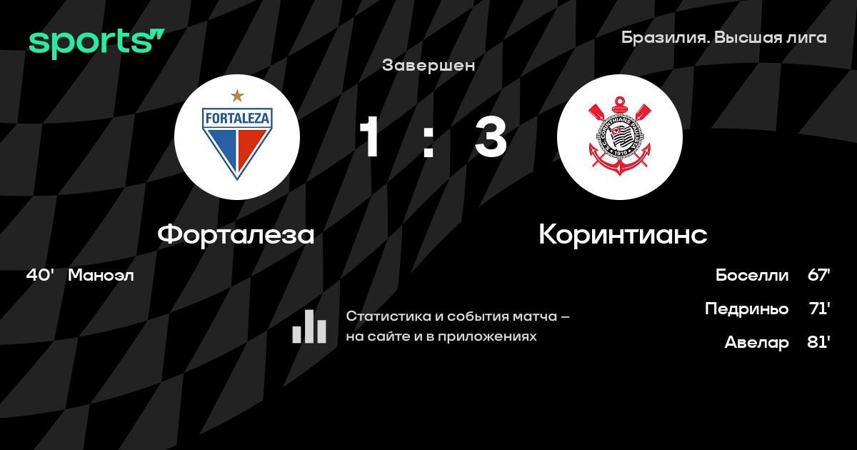 Кассио - Авелар, Жил, Маноэл, Маседо - Эвералдо, Габриэл, Матеус Витал, Жуниор Урсо, Педриньо - БоселлиЗапасные: Валтер, Каике, Энрике Адриано, Фагнер, Карлос Аугусто, Рамиро, Жадсон, Матеус Жезус, Клайсон, Вагнер Лав, Густаво
