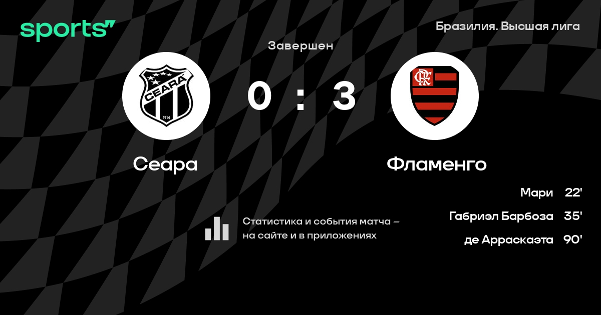 Диего Алвес - Рене, Мари, Родриго Кайо, Жоао Лукас - де Арраскаэта, Пирис, Жерсон, Арао, Беррио - Габриэл БарбозаЗапасные: Сезар, Луис Родолфо, Рафинья, Тулер, Рейньер, Уго Моура, Эвертон Рибейро, Винисиус, Витиньо, Бруно Энрике, Силва