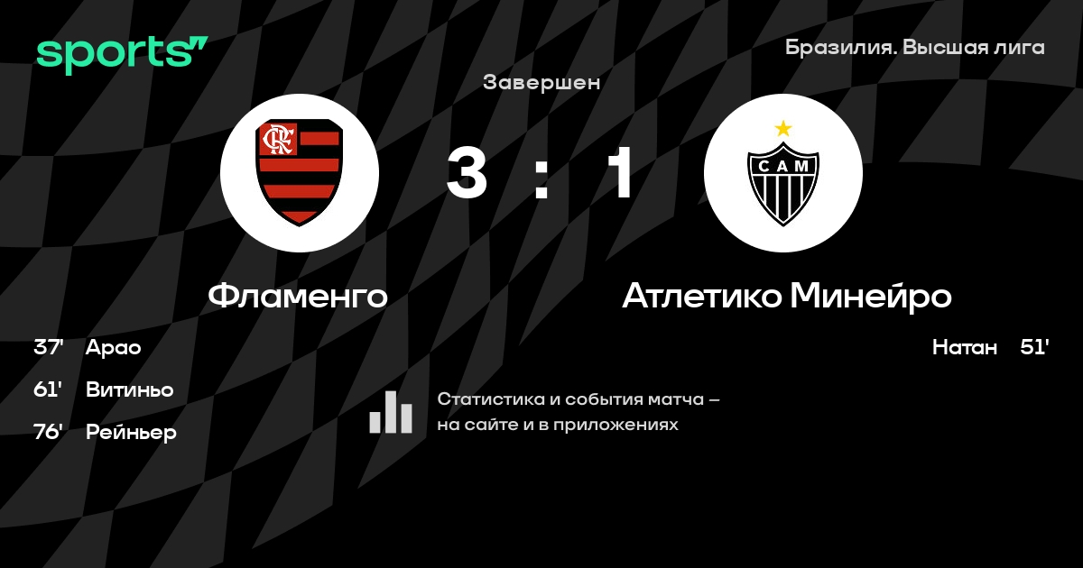 Диего Алвес - Рене, Мари, Луис Родолфо, Рафинья - Жерсон, Арао, Рейньер, Эвертон Рибейро, Витиньо - Бруно ЭнрикеЗапасные: Габриэл Соуза, Сезар, Тулер, Жоао Лукас, Родиней, Матеус Дантас, Уго Моура, Пирис, Пепе, Винисиус, Витор Габриэл, Силва