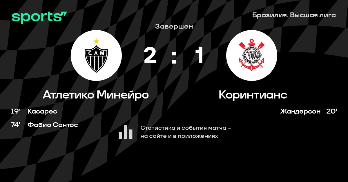 Кассио - Карлос Аугусто, Жил, Маноэл, Фагнер - Клайсон, Габриэл, Педриньо, Жуниор Урсо, Жандерсон - ГуставоЗапасные: Валтер, Каике, Марлон Боржес, Игор Формига, Ральф, Рамиро, Жадсон, Сорноса, Матеус Витал, Боселли, Вагнер Лав, Мадсон