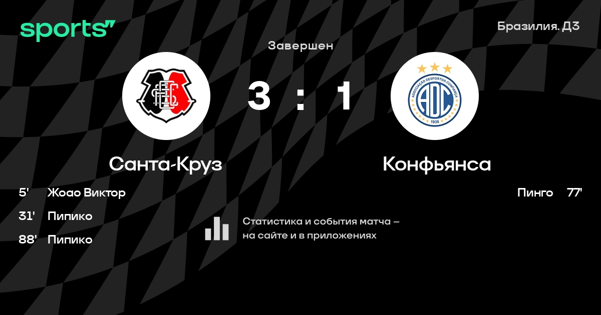 Андерсон - Бруно Ре, Жоао Виктор, Маркос, Виллиан Алвес - Шарлес, Эвертон, Аллан - Мисаэл, Пипико, ДудуЗапасные: Рикардо Эрнесто, Мораис, Вильям, de Souza Lisboa, Paiva Barbosa, Патрик Виейра, dos Santos Soares, Даниэл Коста, Гильерме Гонсалвес, Элиас, Аугусто
