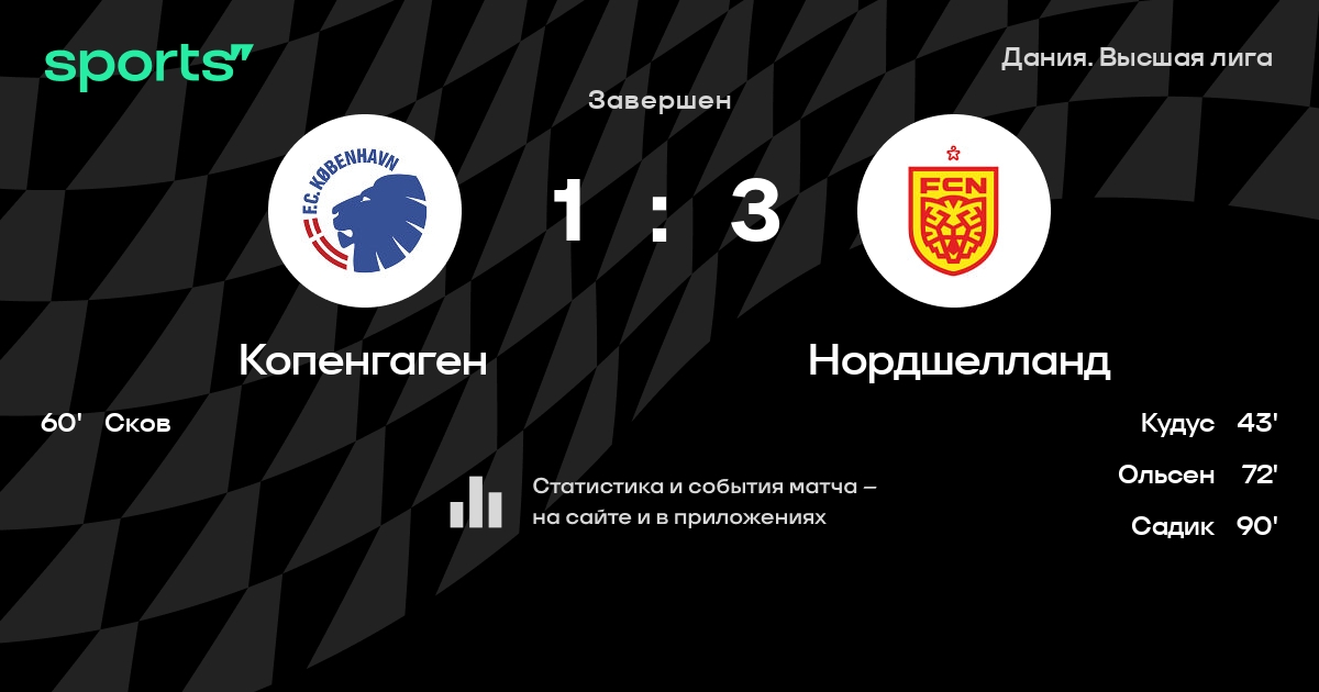 Ларсен - Расмуссен, Йенссен, Нельссон, Якобсен - Кристенсен, Андерсен, Кудус - Рюгор Йенсен, Амон, ОльсенЗапасные: Виндаль-Йенсен, Мумин, Педерсен, Транберг, Дамсгор, Донио, Садик