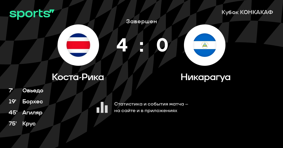 Морейра - Овьедо, Дуарте, Уостон, Гамбоа - Борхес, Агиляр, Крус, Кэмпбелл - Макдональд, ДжорджЗапасные: Мадригаль, Сегура, Кальво, Гонсалес, Матаррита, Боланьос, Фуллер, Техеда, Леаль, Саборио