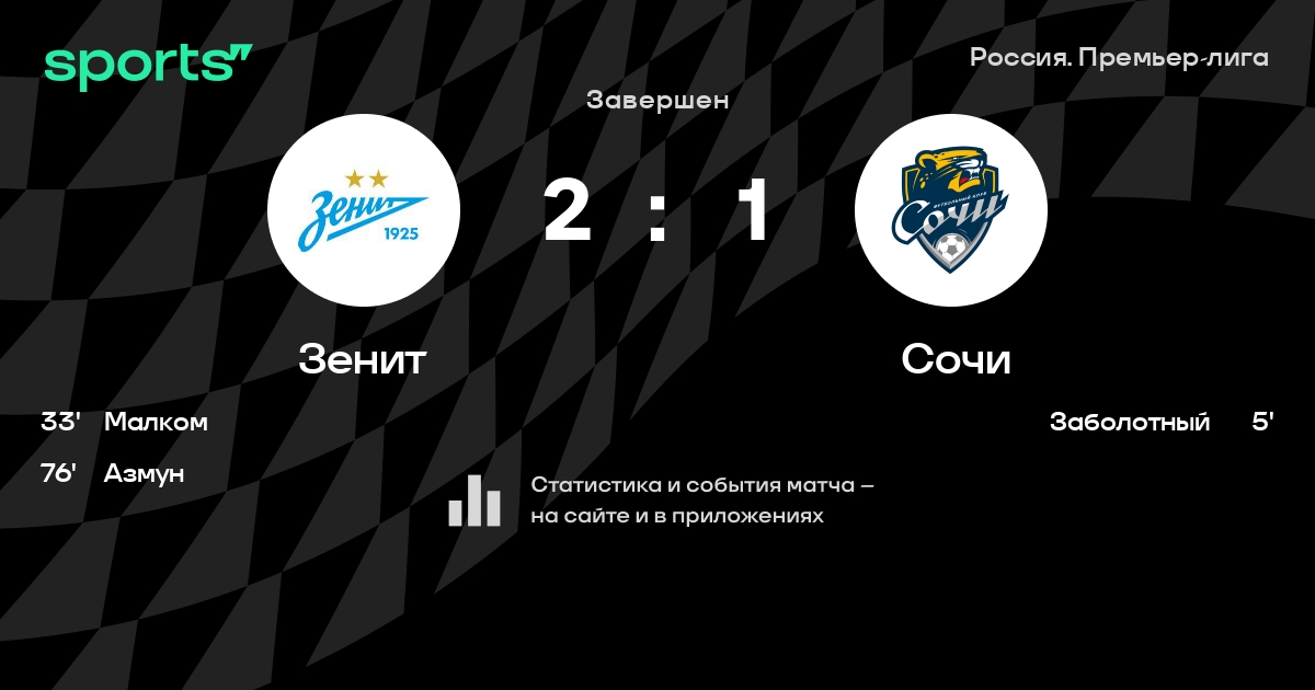 | 1 | Зенит | 30 | 22 | 6 | 2 | 65 | 18 | +47 | 72 | ||