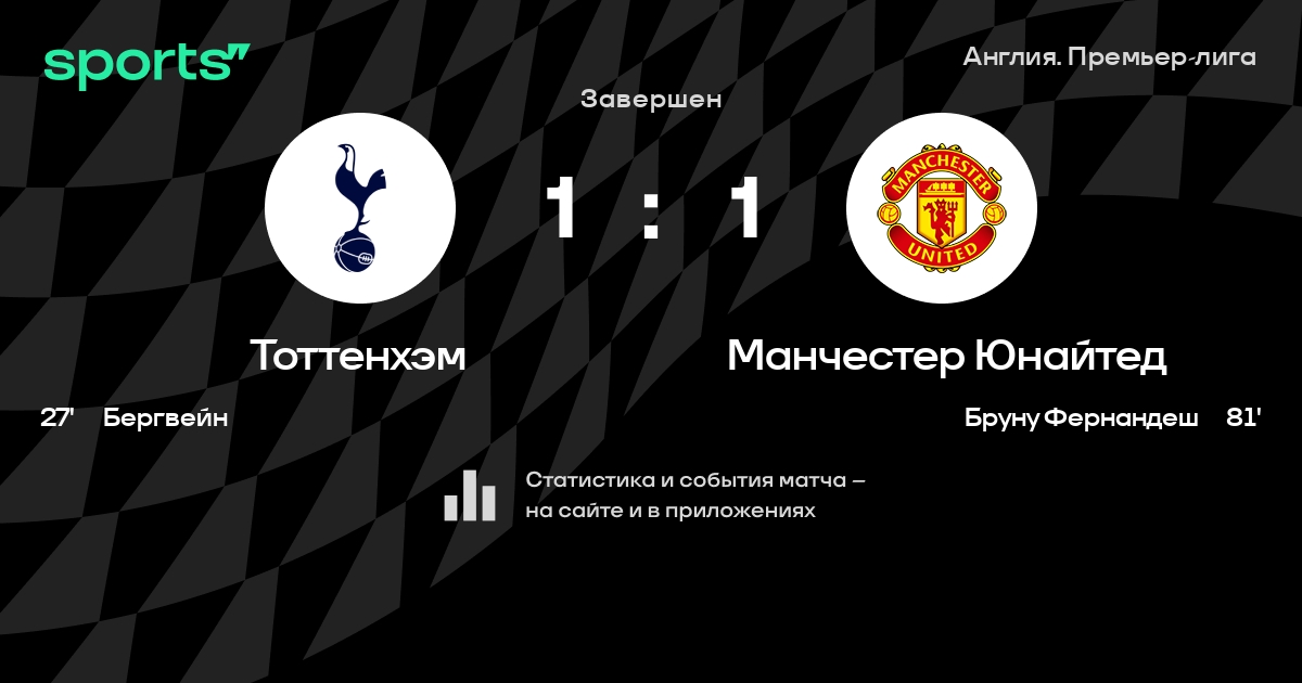 ⚔️«Тоттенхэм» – «МЮ» – 1:1. «Юнайтед» остался пятым, «Шпоры» – восьмые