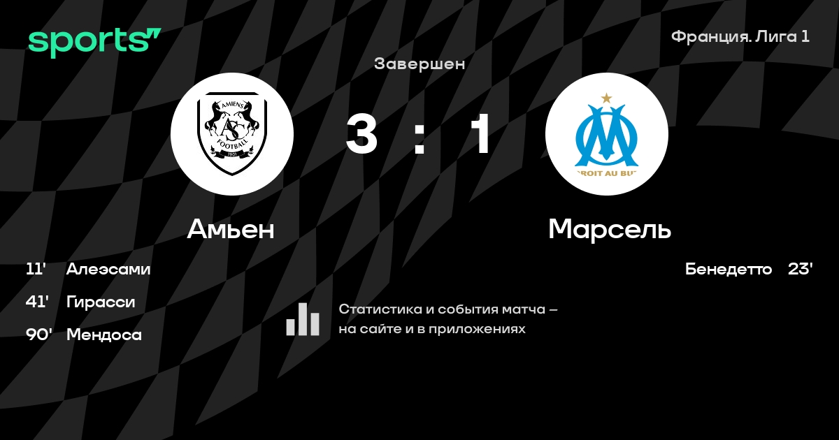 «Марсель» проиграл «Амьену». Команда Виллаш-Боаша не выигрывает 4 матча подряд