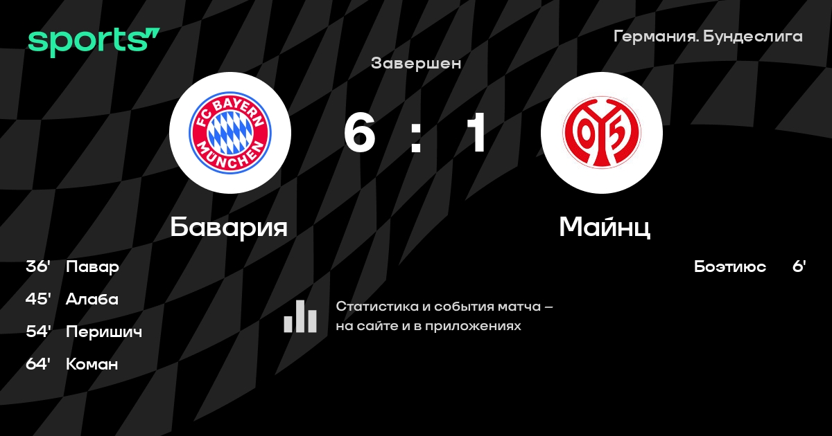 «Бавария» поднялась на 2-е место, разгромив «Майнц» (6:1)