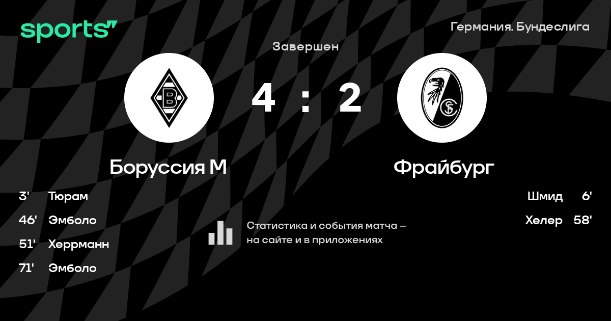 4 | Боруссия М | 34 | 20 | 5 | 9 | 66 | 40 | +26 | 65 | ||