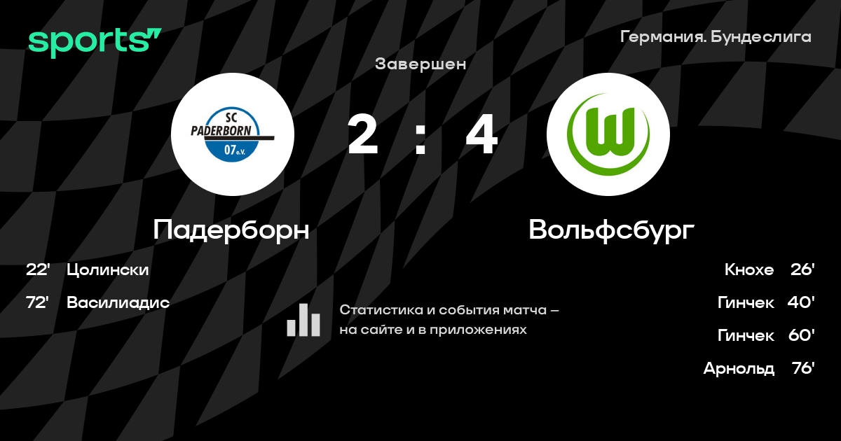 Чемпионат Германии. «Вольфсбург» победил «Падерборн», «Кельн» разгромил «Фрайбург»