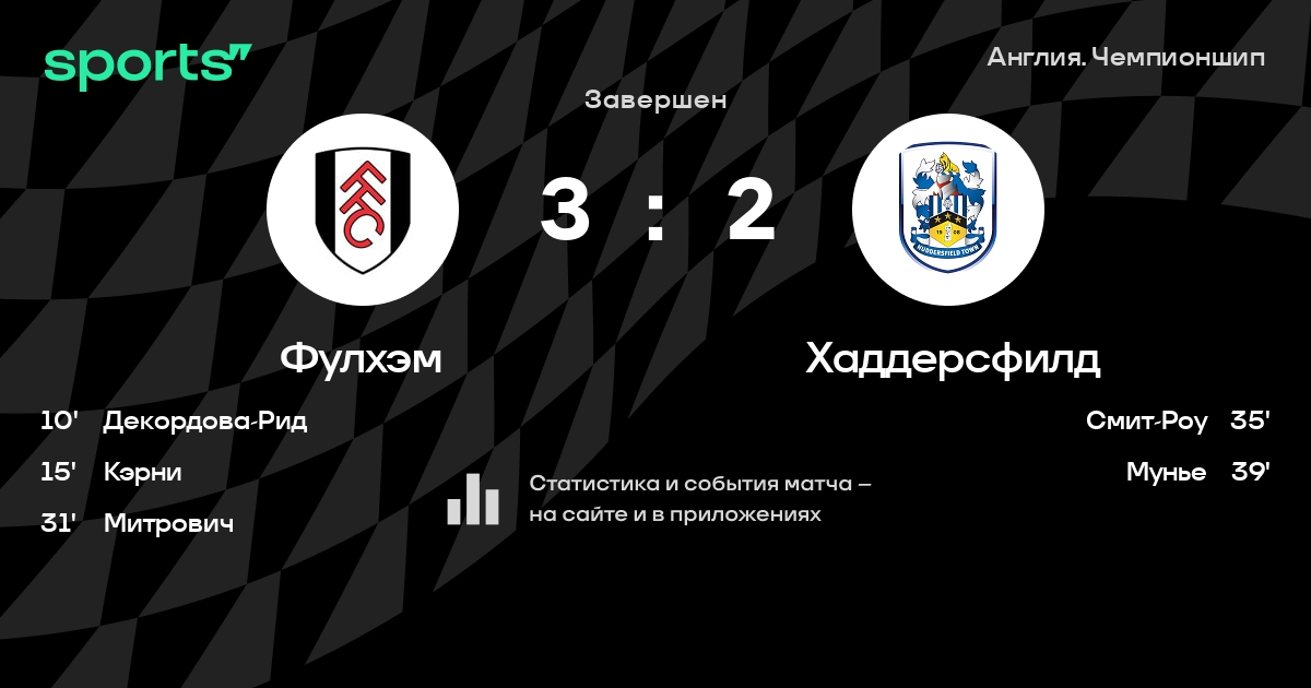 Родак - Брайен, Одои, Хектор, Кристи - Кэрни, Макдоналд, Онома - Декордова-Рид, Митрович, КавалейруЗапасные: Беттинелли, Сессеньон, Артер, Юхансен, Кебано, Де Ла Торре, Камара