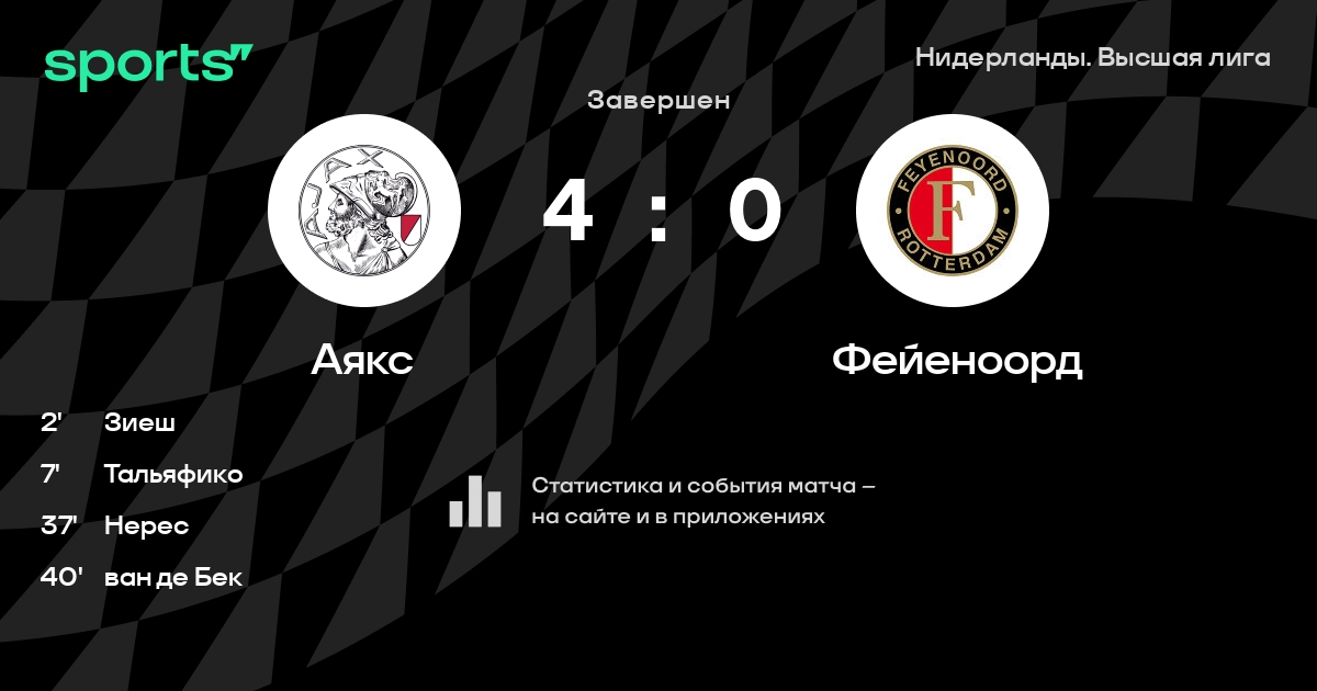 | 3 | Фейеноорд | 25 | 14 | 8 | 3 | 50 | 35 | +15 | 50 | ||
