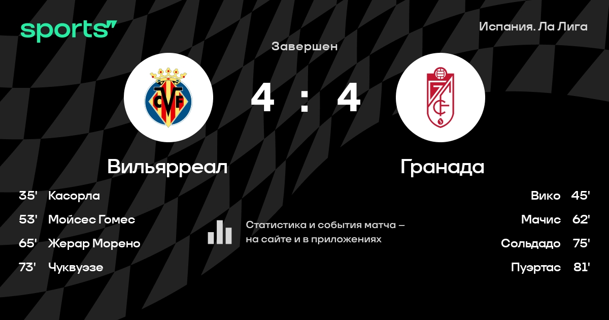 Фернандес - Кинтилья, Пау Торрес, Альбиоль, Пенья - Касорла, Замбо-Ангисса, Иборра, Мойсес Гомес, Чуквуэзе - Жерар МореноЗапасные: Асенхо, Фунес Мори, Марио Гаспар, Морланес, Тригерос, Бакка, Токо-Экамби