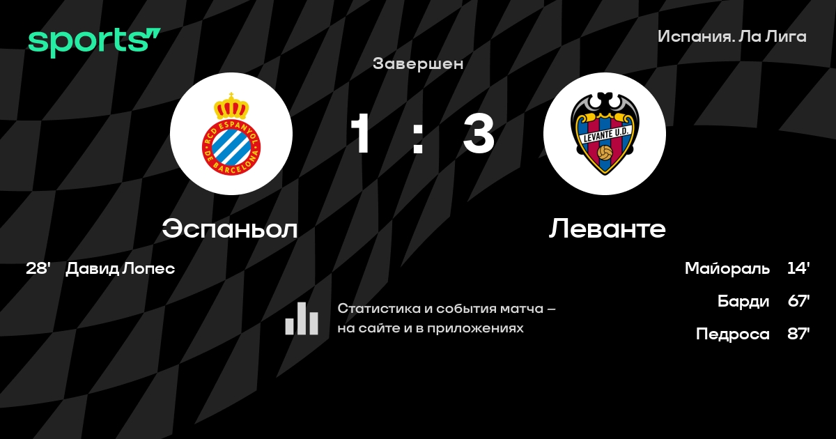 Диего Лопес - Дидак Вила, Кабрера, Давид Лопес, Хави Лопес - Эмбарба, Рока, Санчес, Мелендо - Кальери, У ЛэйЗапасные: Оласабаль, Калеро, Педроса, Налдо, Пипа, Дардер, Итурраспе, Лосано, Меламед, Варгас, Кампусано, Феррейра