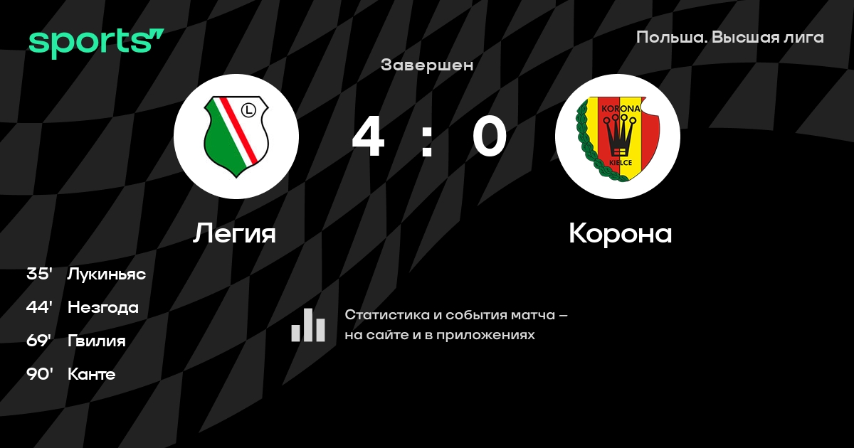Маецки - Карбовник, Левчук, Енджейчик, Вешович - Антолич, Андре Мартинш, Новиковас, Вшолек, Лукиньяс - НезгодаЗапасные: Чежняк, Луиш Роша, Реми, Столярски, Ветеска, Гвилия, Прашелик, Канте, Росолек