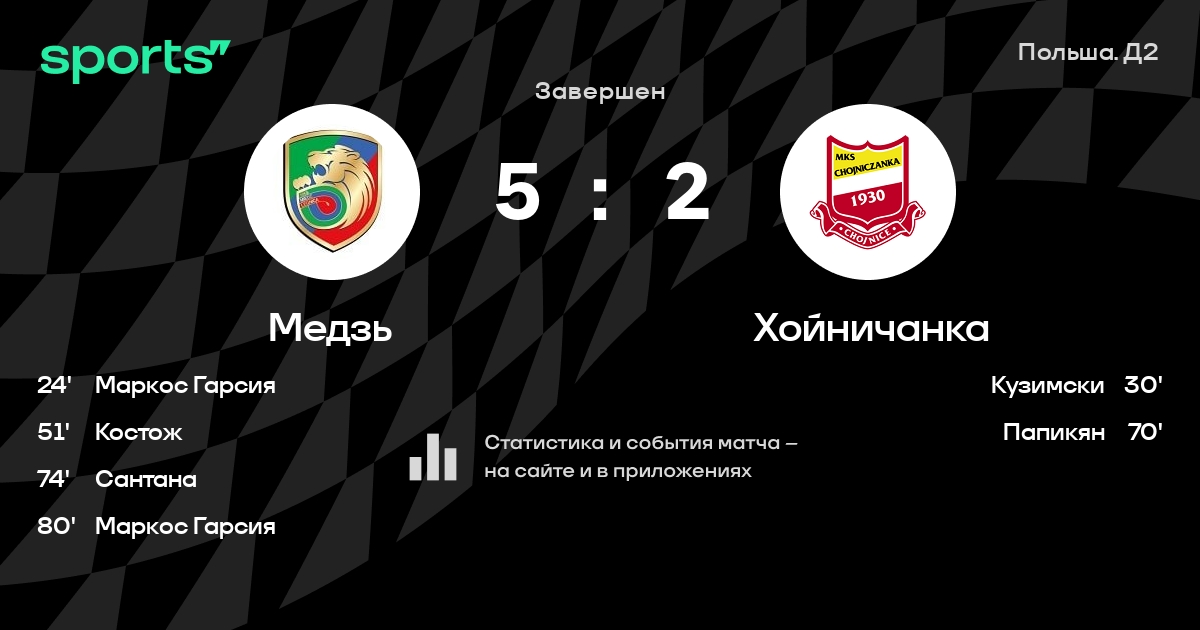 Залуска - Пикк, Муса, Шолич, Хжановски, Зелиньски - Сантана, Маркос Гарсия, Луковски, Пужицки - Костож