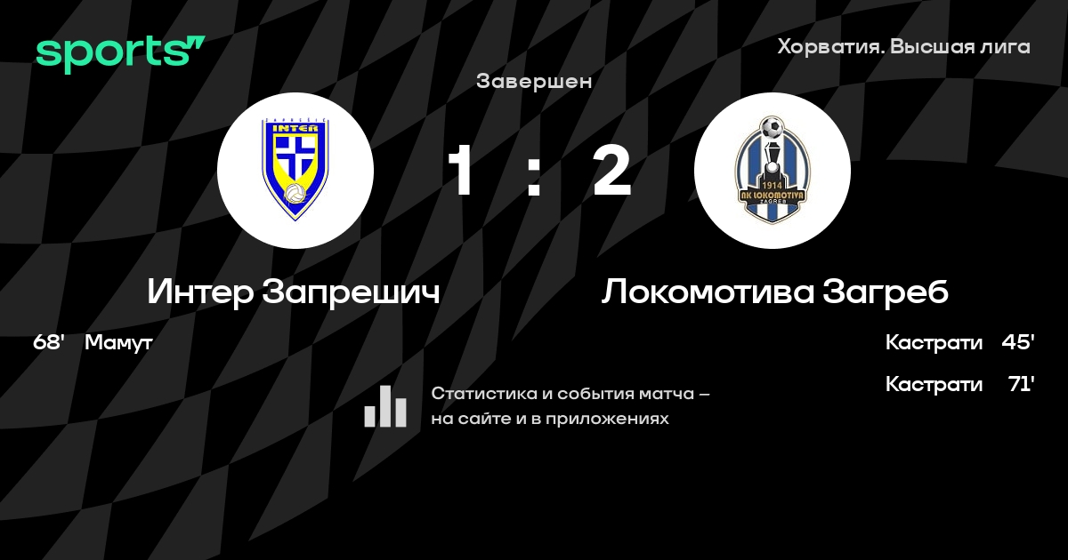 Интер Запрешич – Локомотива Загреб: коэффициенты