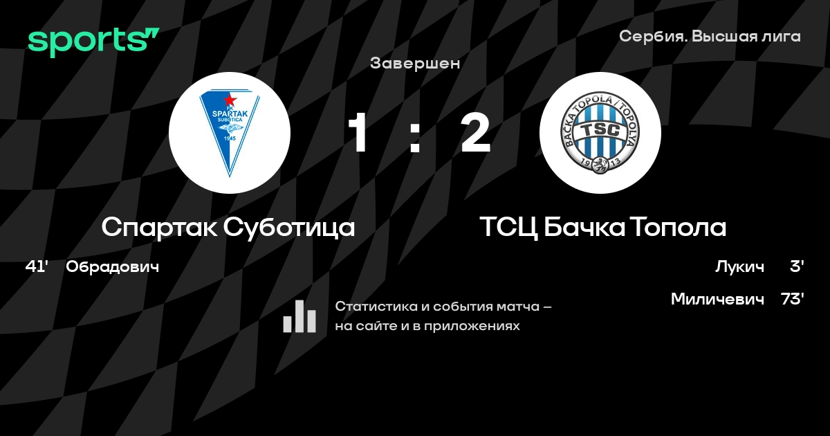 Трансляция Спартак Суботица - ТСЦ Бачка Топола