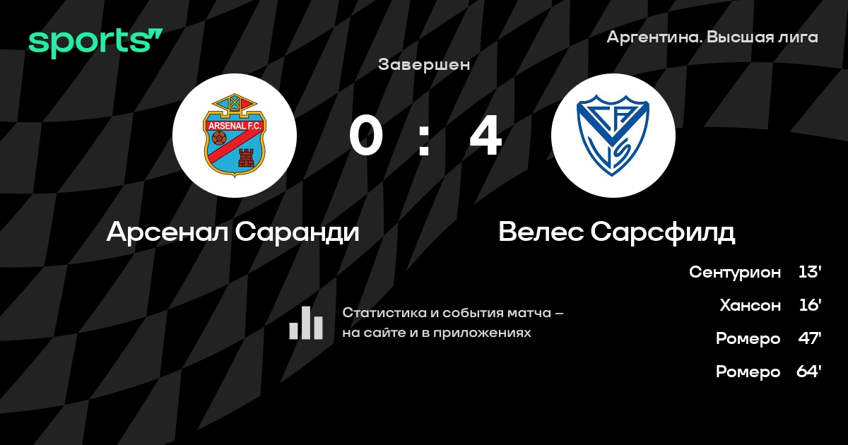Трансляция Арсенал Саранди - Велес Сарсфилд