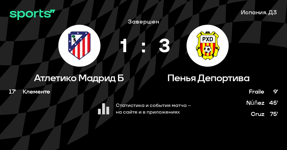 Трансляция Атлетико Мадрид Б - Пенья Депортива