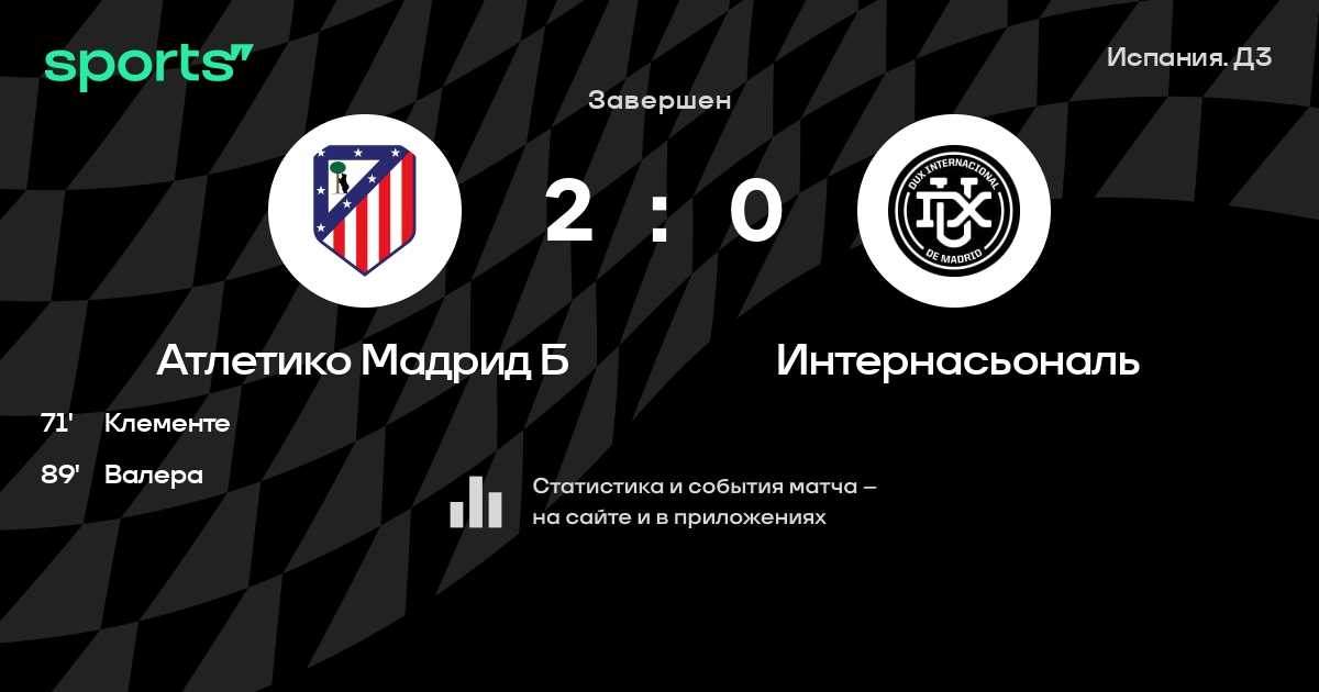 Трансляция Атлетико Мадрид Б - Интернасьональ