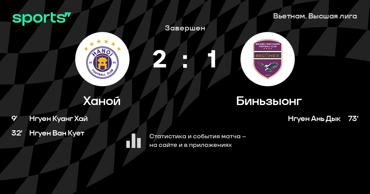 | 1 | Ханой | 26 | 15 | 8 | 3 | 60 | 30 | +30 | 53 | ||