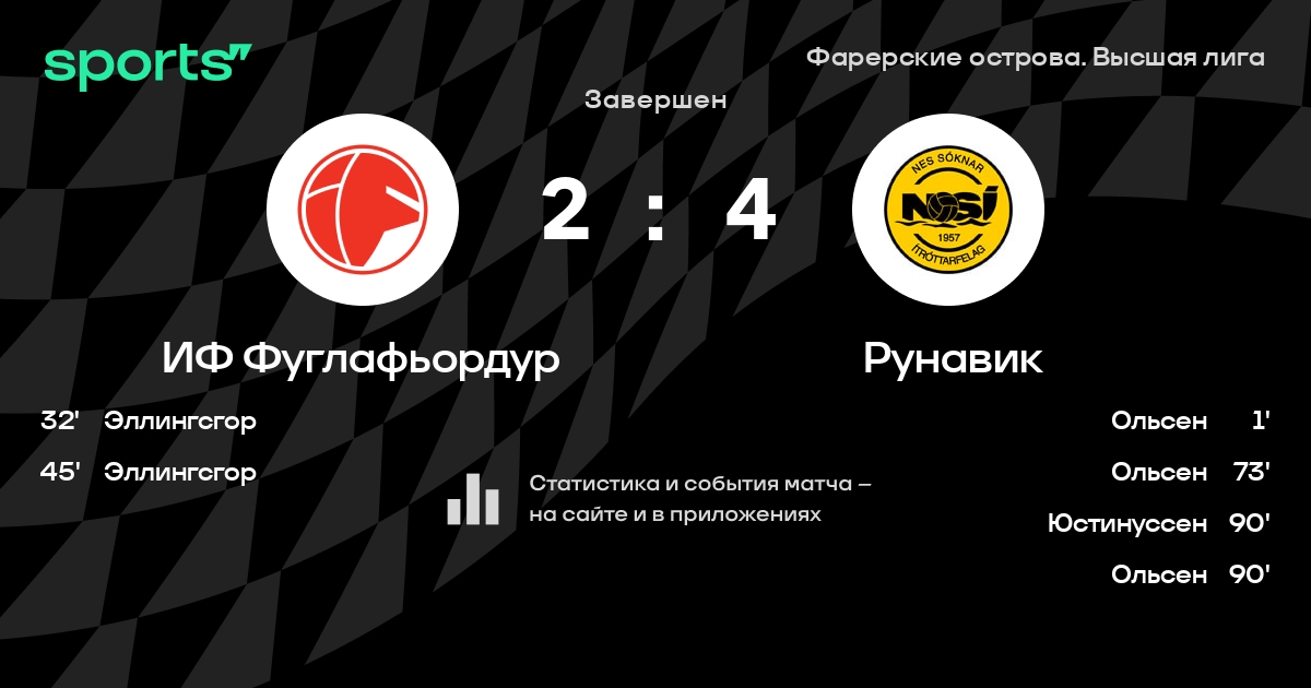 Томсен - Беньяминсен, Нерсвен, Хейгор, Юстинуссен, Хансен, Давидсон - Хансен, Эгильссон - Ольсен, ДальбюдЗапасные: Юнсен, Ланггор, Беньяминсен, Мортенсен, Мортенсен, Хансен, Ольсен