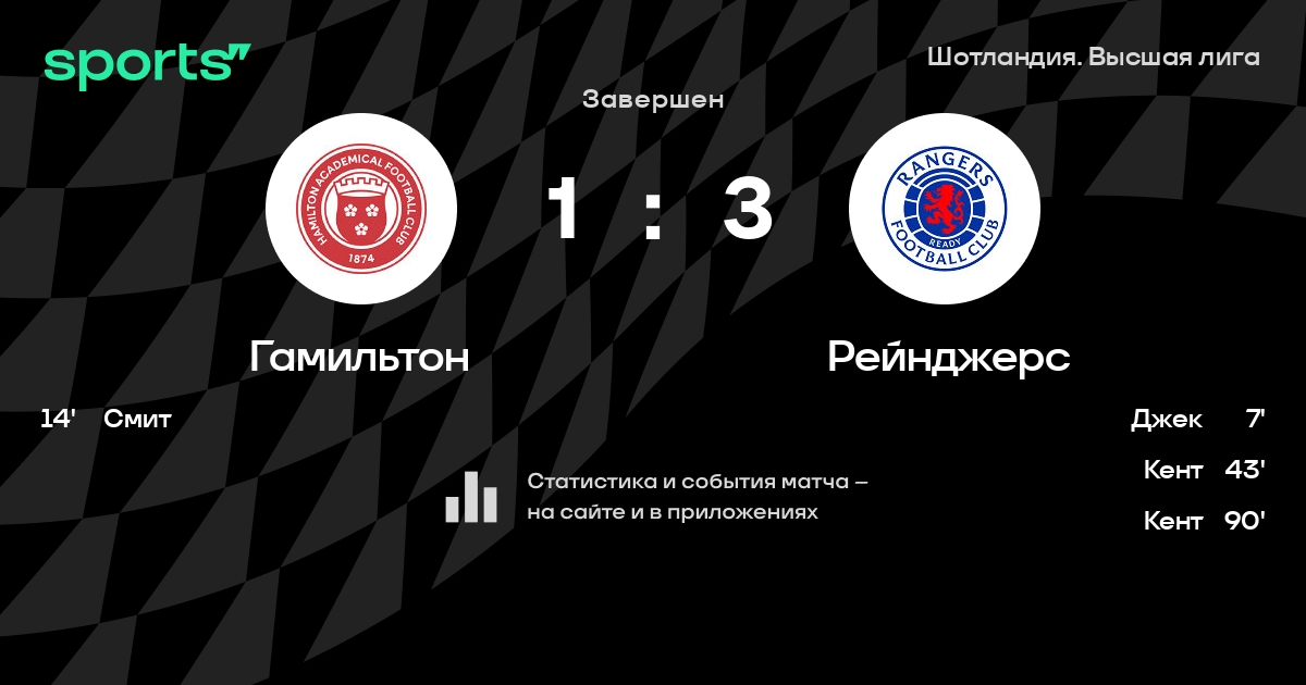 Чемпионат Шотландии. 3-й тур. «Рейнджерс» разгромили «Гамильтон», «Селтик» одолел «Хайберниан»
