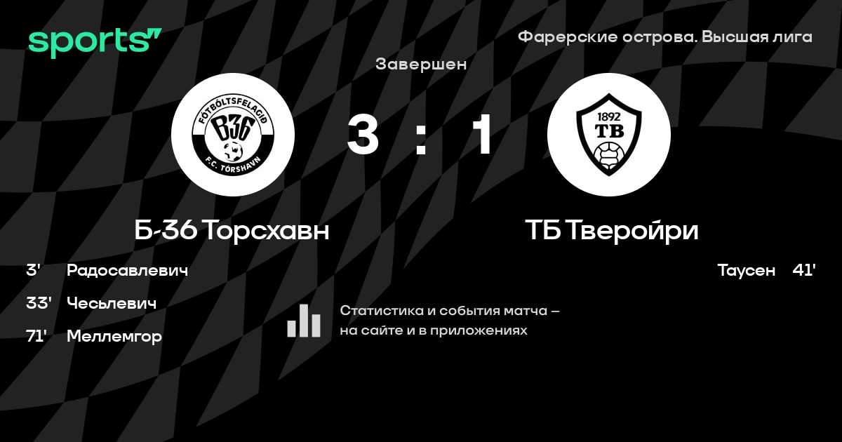 Будакович - Брун, Мортенсен, Magnusarson Ellendersen - Йоханнесен, Годтфред, Таусен, Лео - Таусен, Вукович, ФагербергЗапасные: Бэрентсен, Томассен, Томсен, Дальфосс