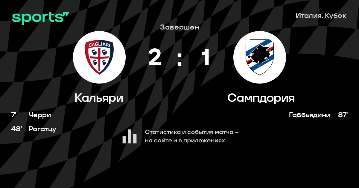 Кубок Италии. 4-й раунд. «Сампдория» уступила «Кальяри», «Парма» победила «Фрозиноне»