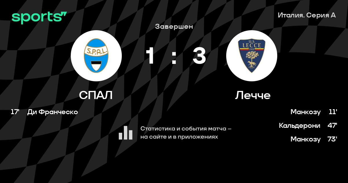 Бериша - Фелипе, Викари, Чонек - Ди Франческо, Куртич, Миссироли, Мурджа, Реца - Петанья, ФлоккариЗапасные: Летица, Тиам, Каннистра, Сала, Томович, Игор Жулио, Янкович, Вальдифьори, Валоти, Мончини, Палоски, Стрефецца