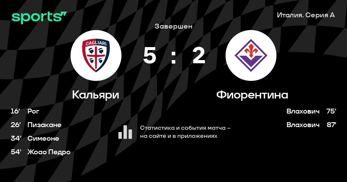 Ольсен - Пеллегрини, Клаван, Пизакане, Каччаторе - Рог, Чигарини, Нандес, Наингголан - Жоао Педро, СимеонеЗапасные: Арести, Биттенкур, Ликояннис, Пинна, Валюкевич, Дейола, Фараго, Ионицэ, Кастро, Олива, Черри, Рагатцу
