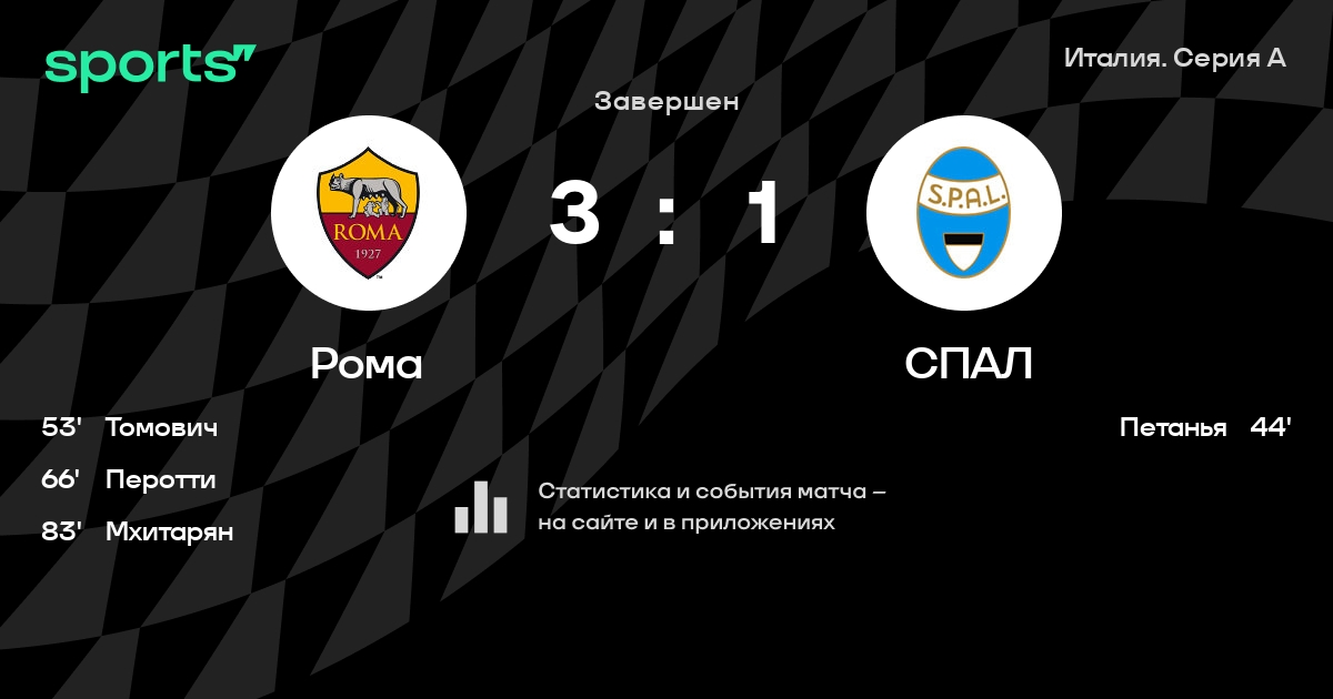 Лопес - Коларов, Фасио, Четин, Флоренци - Верету, Диавара, Перотти, Пеллегрини, Дзаньоло - ДжекоЗапасные: Кардинали, Фузато, Жезус, Спинаццола, Мхитарян, Антонуччи, Калинич, Ундер