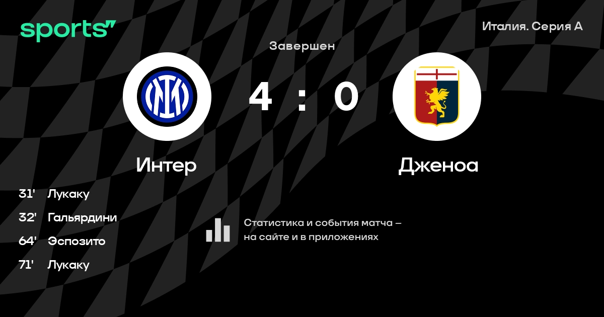 Ханданович - Бастони, де Врей, Шкриньяр - Бираги, Гальярдини, Валеро, Весино, Кандрева - Эспозито, ЛукакуЗапасные: Берни, Паделли, Д`Амброзио, Димарко, Годин, Лазаро, Раноккия, Агуме, Сенси, Политано