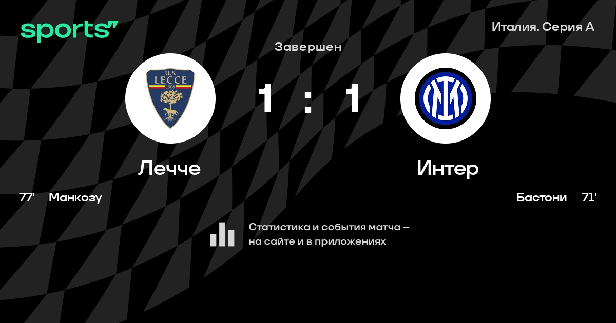 «Интер» сыграл вничью с «Лечче» (1:1). У «Юве» на одно очко больше и матч в запасе