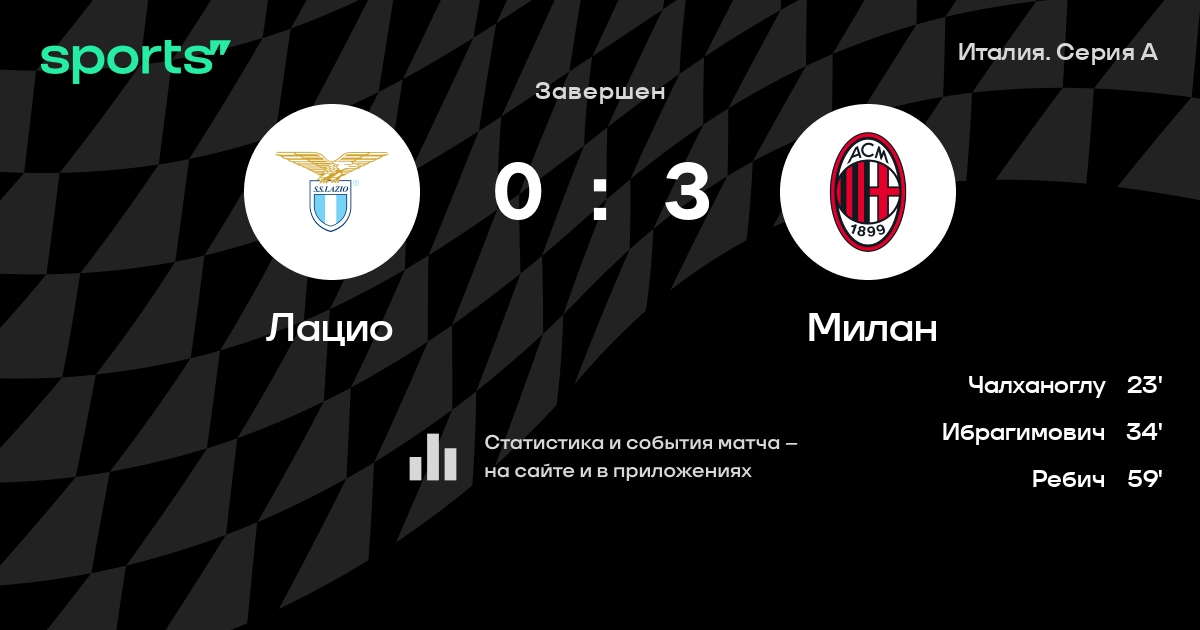 «Лацио» дома проиграл «Милану» (0:3) и отстает от «Ювентуса» на 7 очков