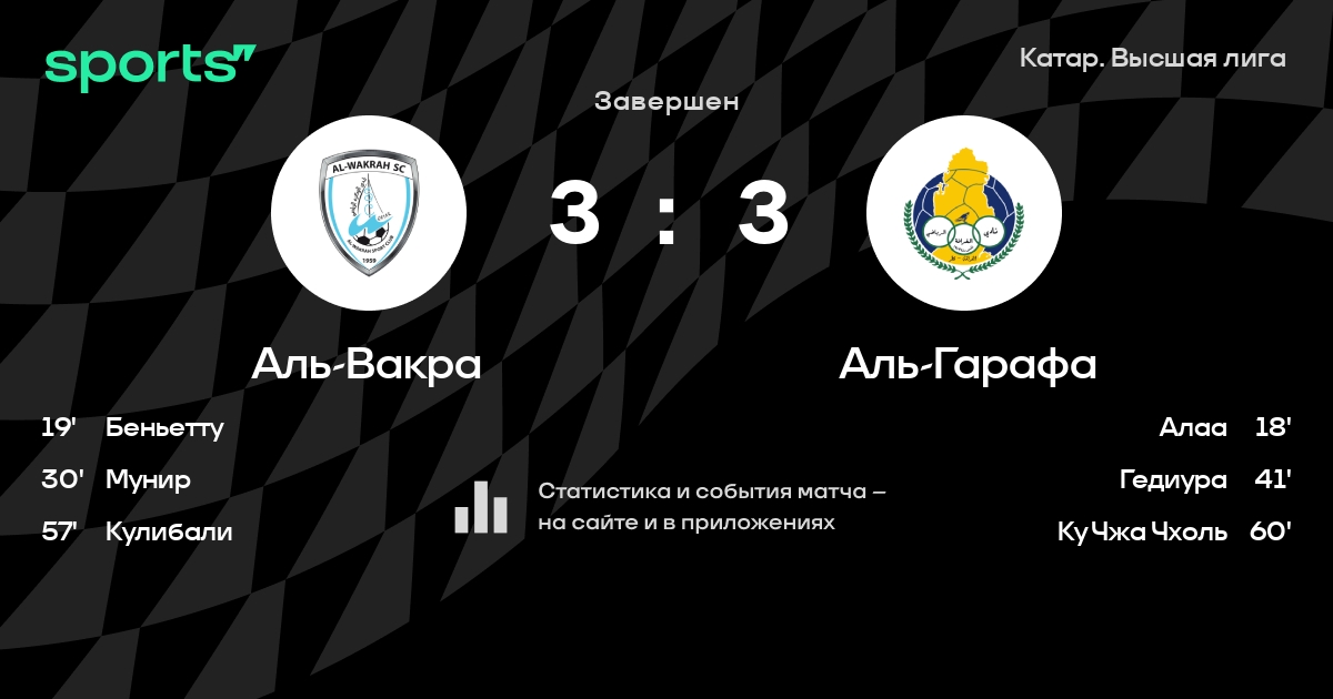 Аль-Вакра – Аль-Гарафа: коэффициенты